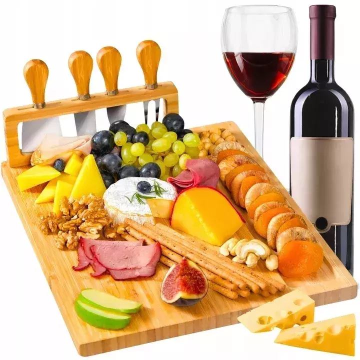 Zestaw noży - W zestawie znajdują się specjalne noże do wędlin, serów i innych przekąsek, które doskonale sprawdzą się przy krojeniu i nakładaniu na deskę.