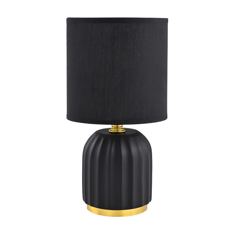 Lampka stołowa nocna czarno-złota ryflowana 26,5 cm – eleganckie oświetlenie do sypialni i salonu