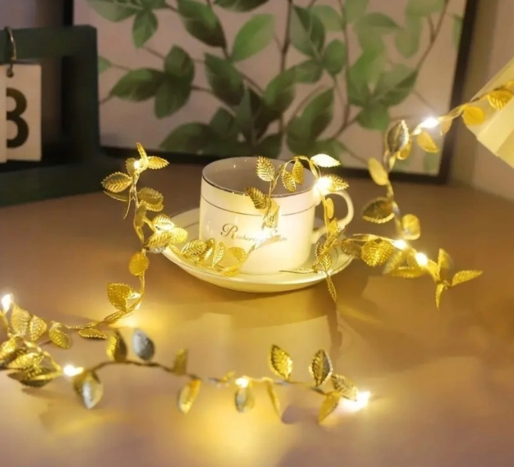 ✨ Złote liście + ciepłe światło LED = przytulny i stylowy klimat w Twoim domu.
