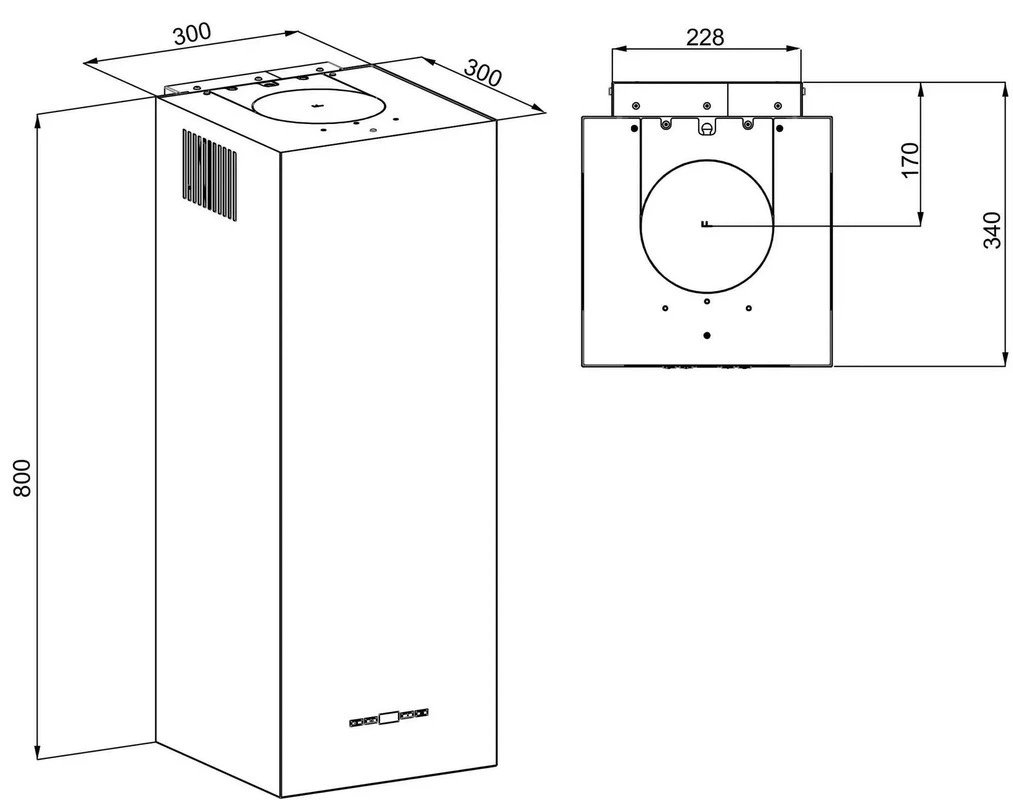 PRACA W TRYBIE WYCIĄGU - Prawidłowa praca okapu w trybie wyciągu, wymaga podłączenia rury odprowadzającej do systemu wentylacyjnego. Opary, tłuszcz i niechciane zapachy są filtrowane i usuwane przez komin wentylacyjny. Zestaw nie zawiera rury odprowadzającej.