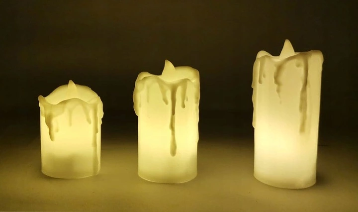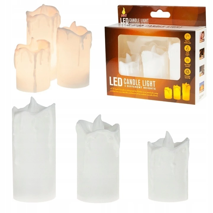 Świece LED – zestaw 3 szt. białe, imitacja wosku