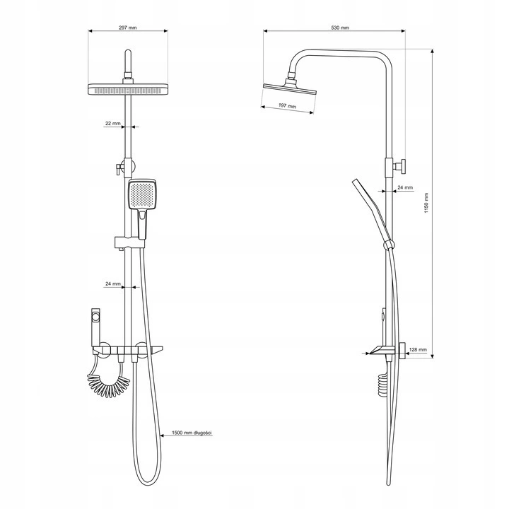 - Długość węża natryskowego: 1500 mm