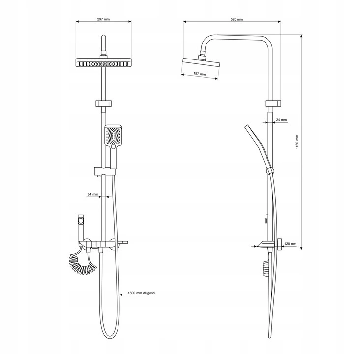 - Długość węża natryskowego: 1500 mm