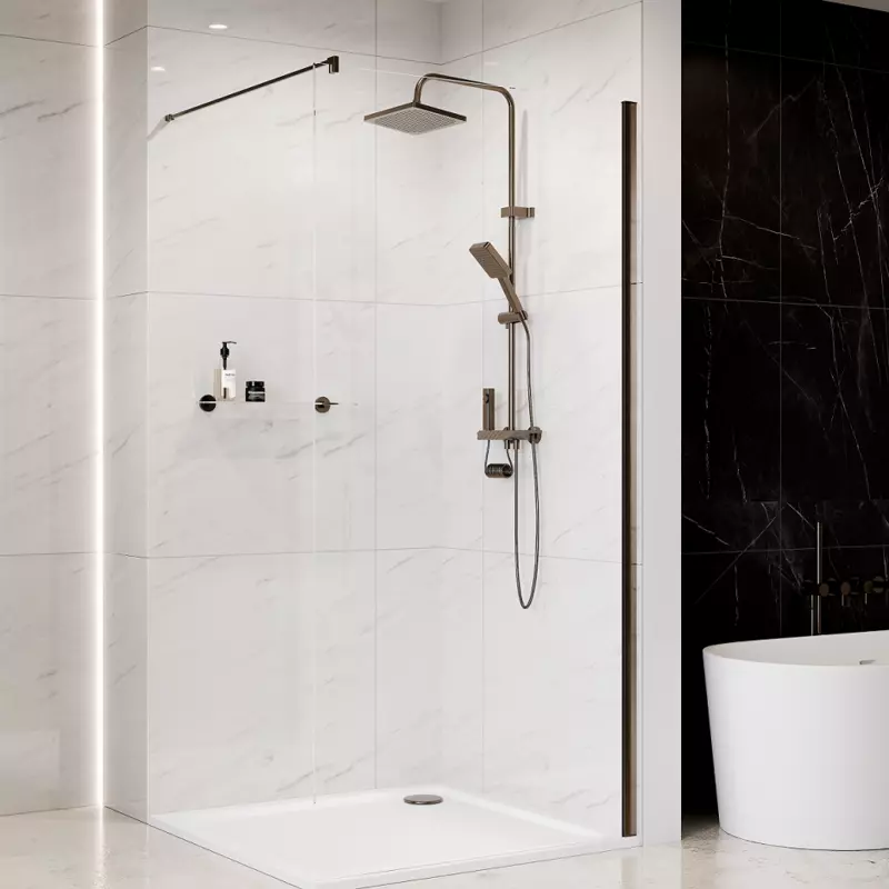 Termostatyczna bateria: gwarantuje utrzymanie stabilnej temperatury wody, eliminując ryzyko nagłych zmian.
