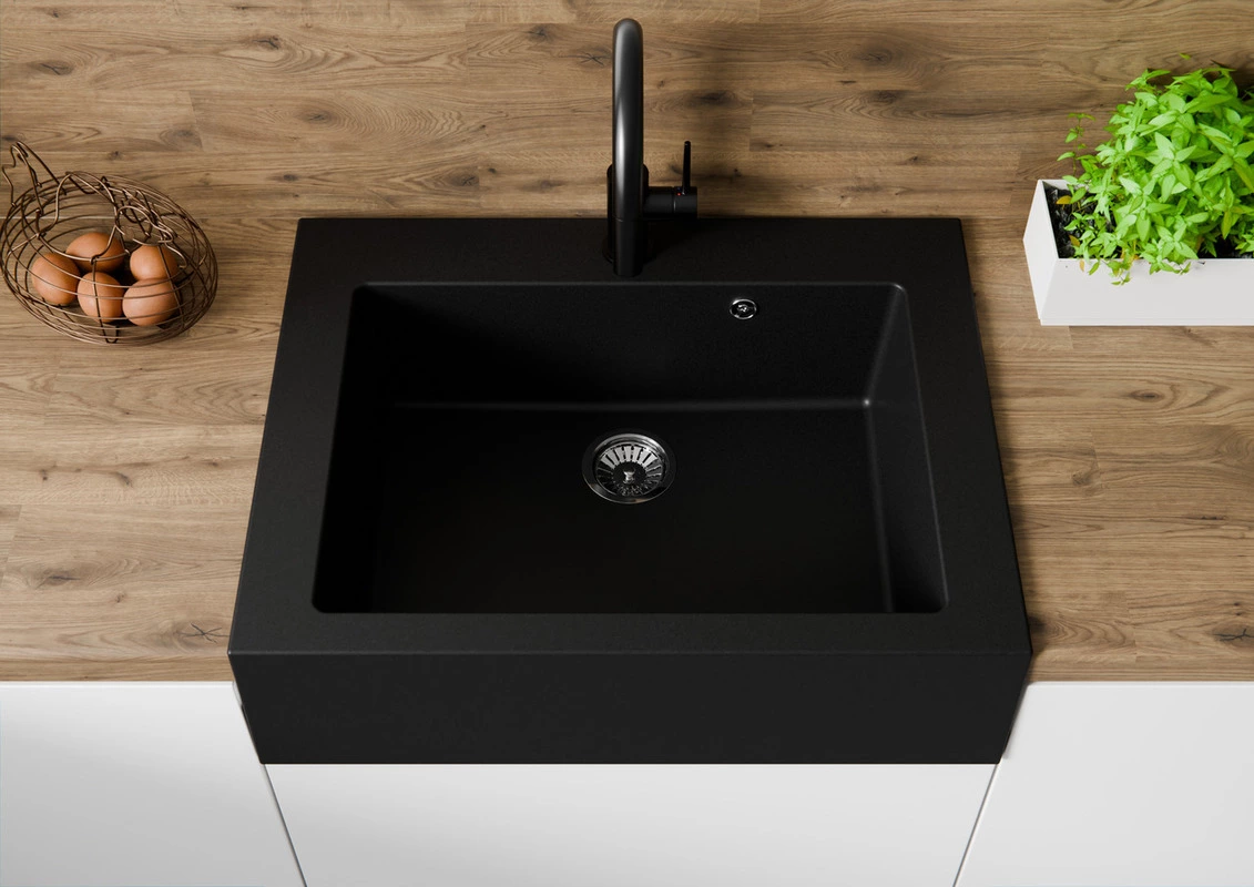 Wykonany z odpornego kompozytu granitowego, zlew farmerski cechuje się wyjątkową trwałością – jest odporny na zarysowania, przebarwienia, uderzenia oraz temperatury do 250°C. Gładka, nieporowata powierzchnia jest łatwa w czyszczeniu i higieniczna w codziennym użytkowaniu.