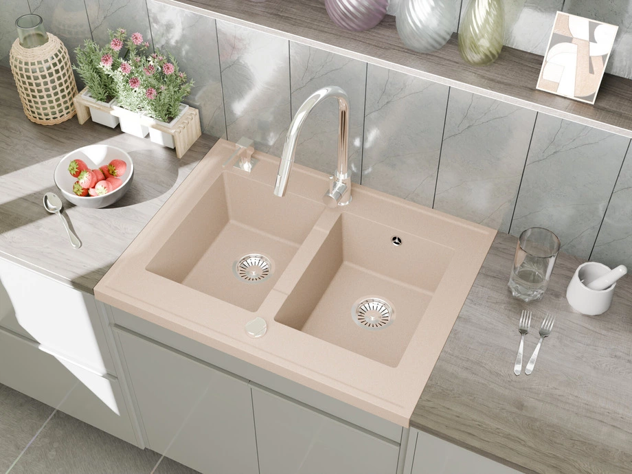 Zlewozmywak granitowy Grande – dwukomorowy zlew nakładany na szafkę, stworzony do intensywnego użytkowania
