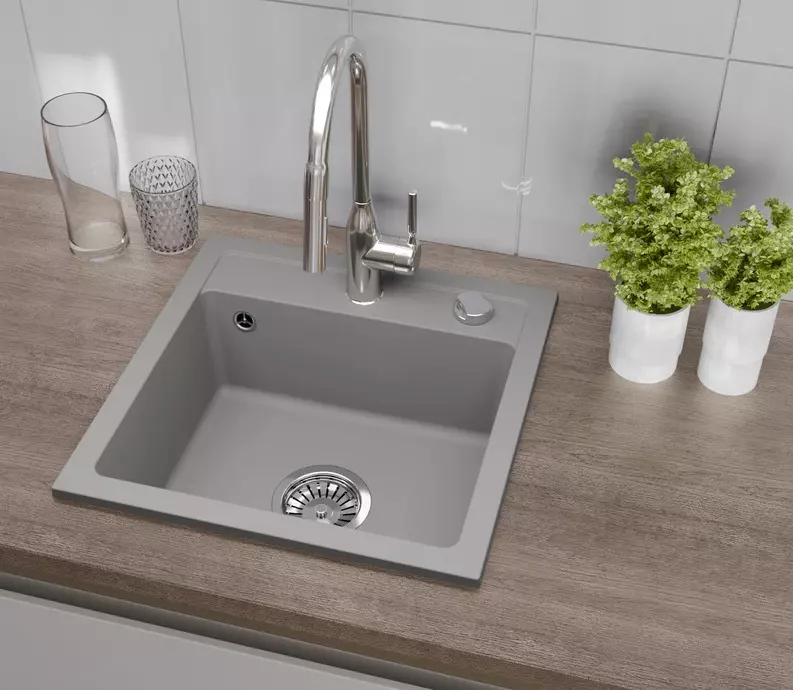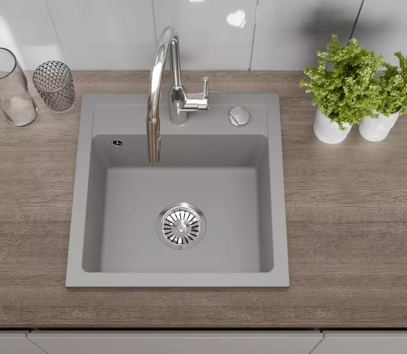 Zlewozmywak kuchenny granitowy jednokomorowy bez ociekacza Bella szary 44 x 44 cm