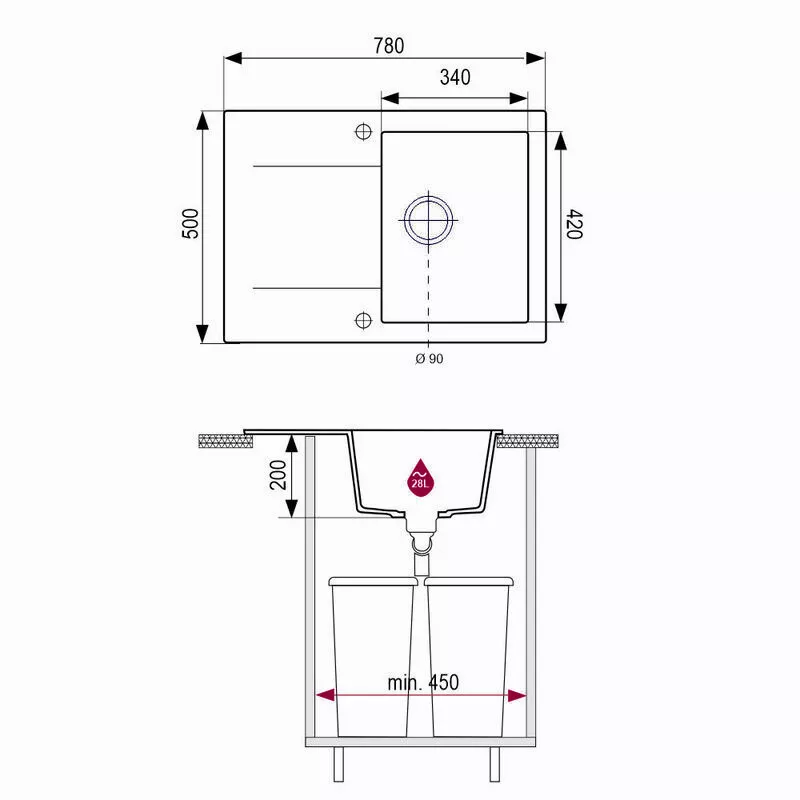 ✅ Montaż wpuszczany w blat jest szybki i bezproblemowy – z pomocą dołączonego szablonu montażowego bez trudu dopasujesz go do swojej kuchni. Dodatkowo istnieje możliwość wykonania otworu na baterię lub dozownik, co zwiększa funkcjonalność zestawu.