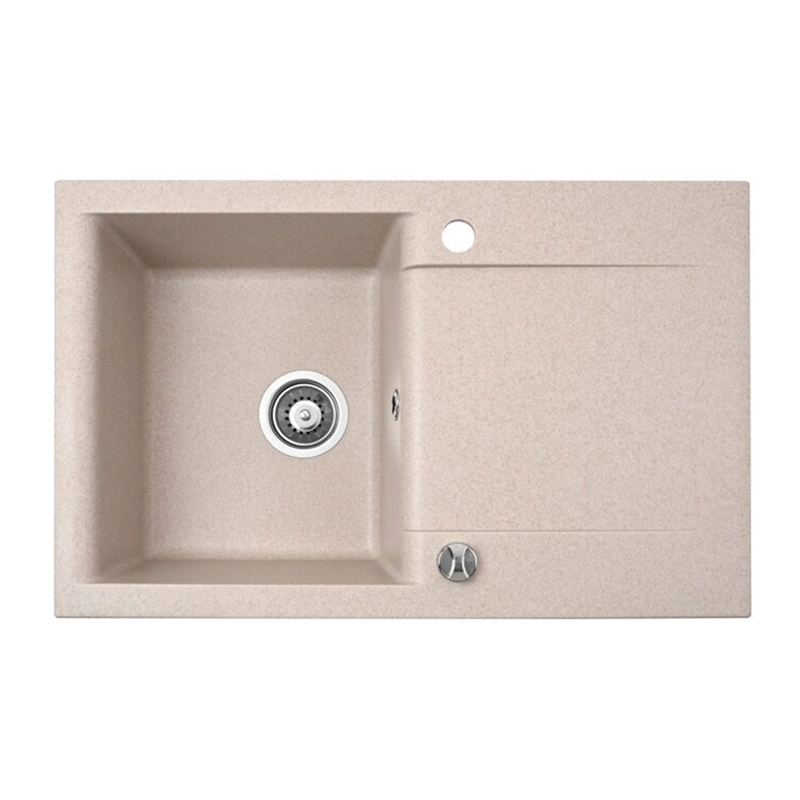 Wykonany z wytrzymałego kompozytu granitowego, Estein 1KO charakteryzuje się wysoką odpornością na zarysowania, uderzenia, wysoką temperaturę oraz przebarwienia. Gładka powierzchnia ułatwia utrzymanie czystości, a symetryczna konstrukcja umożliwia montaż z ociekaczem po lewej lub prawej stronie – zgodnie z układem kuchni.