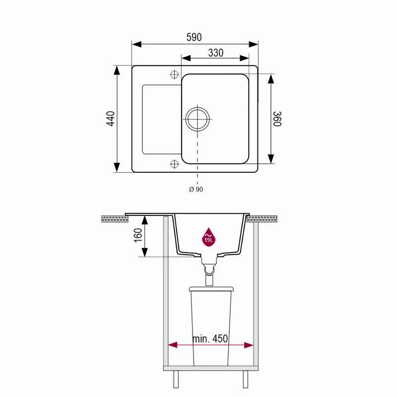 Luna 59 to wysokiej jakości zlewozmywak granitowy jednokomorowy z ociekaczem, zaprojektowany przez polską markę Brenor z myślą o codziennym komforcie użytkowania i eleganckim wyglądzie.
